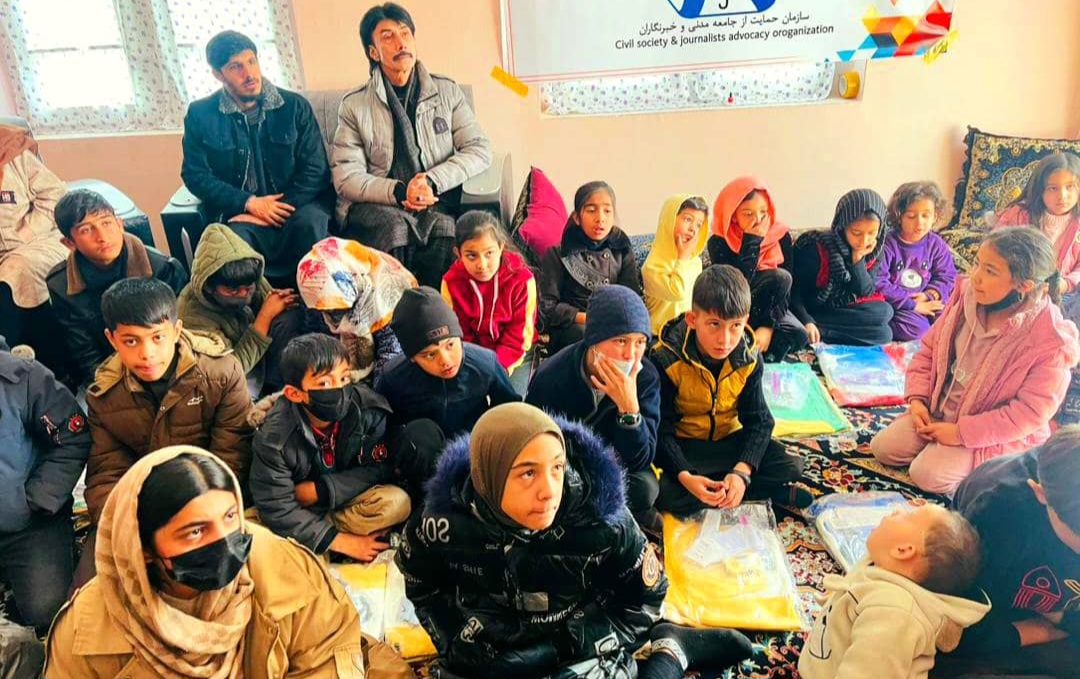 در پی سقوط افغانستان بهدست طالبان و افزایش فقر و بیکاری، «سازمان حمایت از جامعه مدنی و خبرنگاران افغانستان» برای ده ها تن از کودکان یتیم و بیسرپرست در کابل البسه زمستانی توزیع نمود.